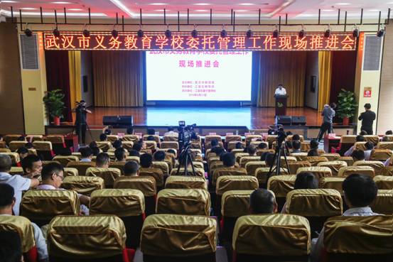 2018年5月31日下午,武汉市义务教育学校委托管理工作现场推进会在365bet手机网址多少对口支援单位江夏区康宁路学校成功召开。来自全市共55个委托管理工作项目组的支援与受援单位双方负责人近300人参加了本次会议。武汉市教育局副局长夏春胤,基教处处长朱俊、副处长李奇兵,华中师范大学教育学院涂艳国教授,华中大教科院李太平教授、董晓林书记,湖北大学教育学院李经天教授,江汉大学教育学院兰军教授,以及各区教育局分管副局长出席了会议。其中,华中大教科院-康宁路学校项目组作为全市代表在会上做了1小时的发言。湖北大学教育学院-东西湖区三店学校项目组、武汉市第一初级中学-黄陂区甘棠中学项目组、硚口区东方红小学-蔡甸区第六小学项目组、青山区红钢城小学-新洲区阳逻武湖小学项目组分别进行了8分钟发言。